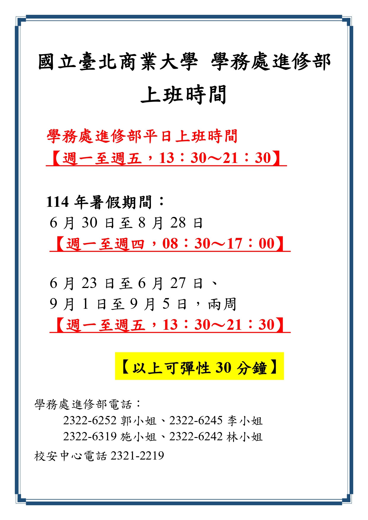 學務處進修部-113學年度暑假上班時間公告